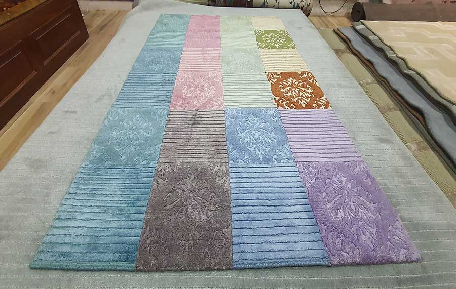 Add a pop of color to your room with this vibrant and eye-catching carpet!